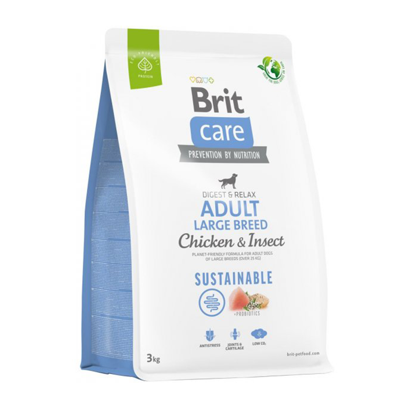 Brit Care Adult Large Breed 3KG CHICKEN & INSECT Dog Alimento Super Premium, sostenible Y ecológico para una digestión Saludable, reducción del estrés, mejora de la condición física y apoyo de sistema inmune.